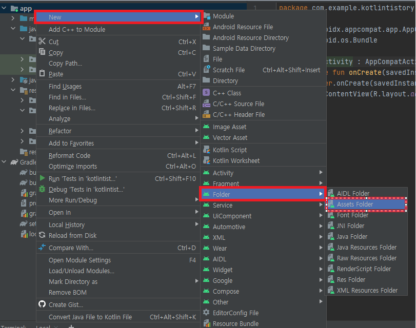 assets 폴더가 없으신 분들은 [우클릭] -> [New] -> [Forder] -> [Asset Folder]를 만드시면 됩니다.