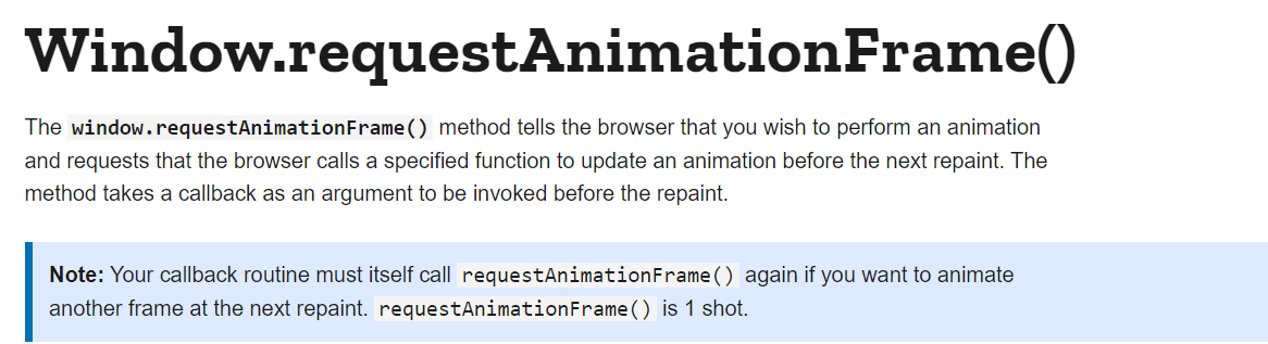이것은 원하는 함수를 애니메이션으로 만들어줍니다. 이 함수 덕분에 모니터 주사율에 따라 최적화된 애니메이션을 제공하게 되는 것이죠.