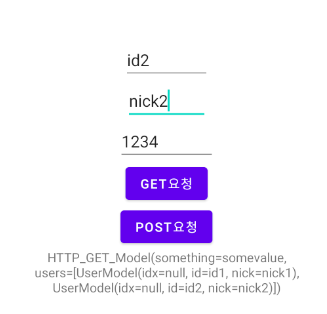각 요청에 대한 response값을 단순한 형태로 text뷰에 나타냈습니다.