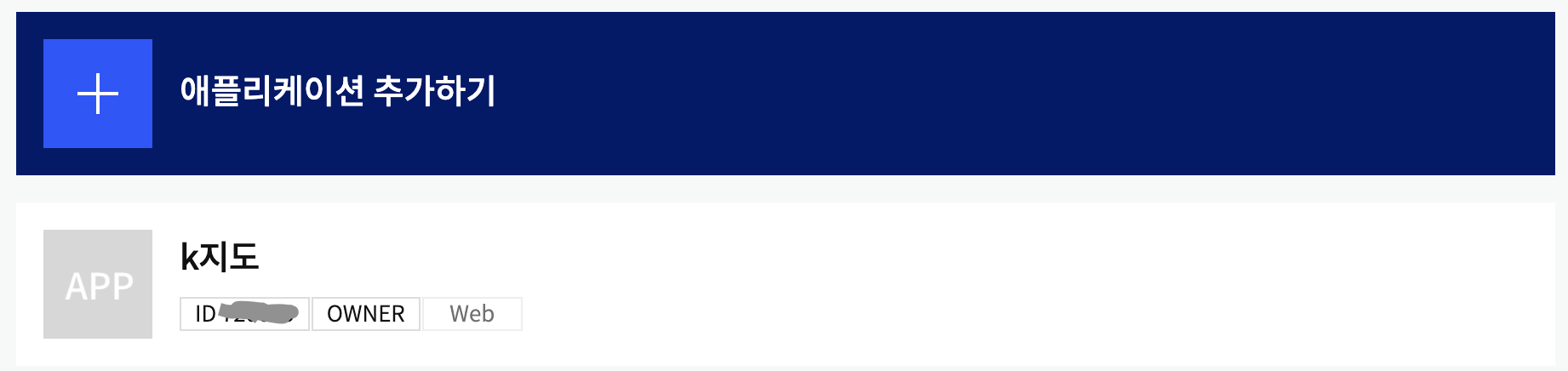 '내 어플리케이션' 메뉴에 들어가서 '애플리케이션 추가하기'를 선택합니다.
