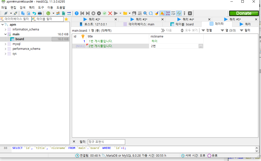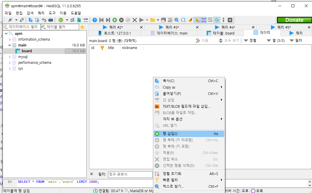 저는 DB 접속툴로 HeidiSQL 을 사용하도록 하겠습니다.