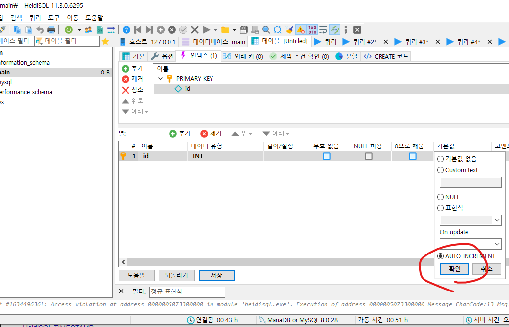 기본 값으로 auto_increment 가 적용되게 만들어주세요.