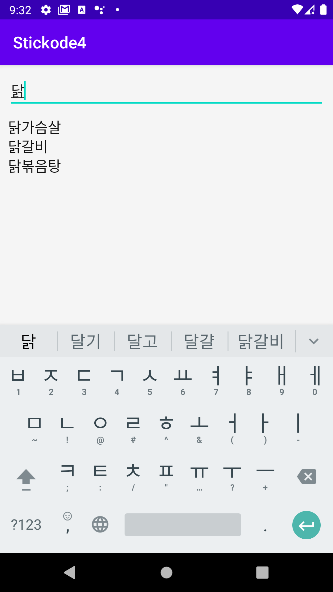 그 후에 '닭'을 검색했을 때 닭이 포함된 단어인 닭가슴살 , 닭갈비 , 닭볶음탕만 보이는 것을 확인할 수 있습니다.!