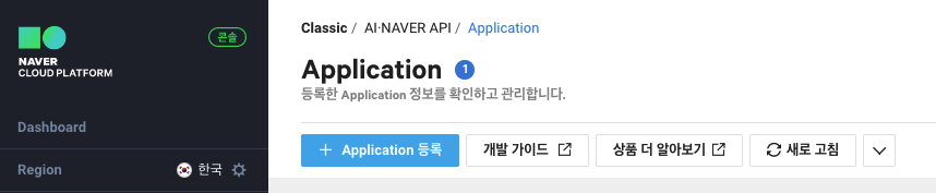 등록이 완료되면 등록된 application 정보를 확인할 수 있습니다.