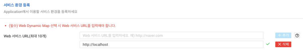 그리고 네이버 지도 api 를 사용할 서비스 url을 입력합니다.