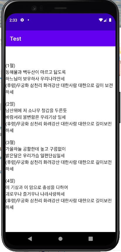 오늘은 안드로이드에서 줄바꿈이 적용된 긴 글을 텍스트뷰에 위치시켜야 할 때 사용할 수 있는 방법에 대해 알아보겠습니다.
