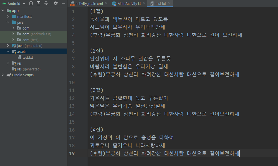 1. 필요한 텍스트 파일을 만들어서 assets 폴더에 넣어줍니다.