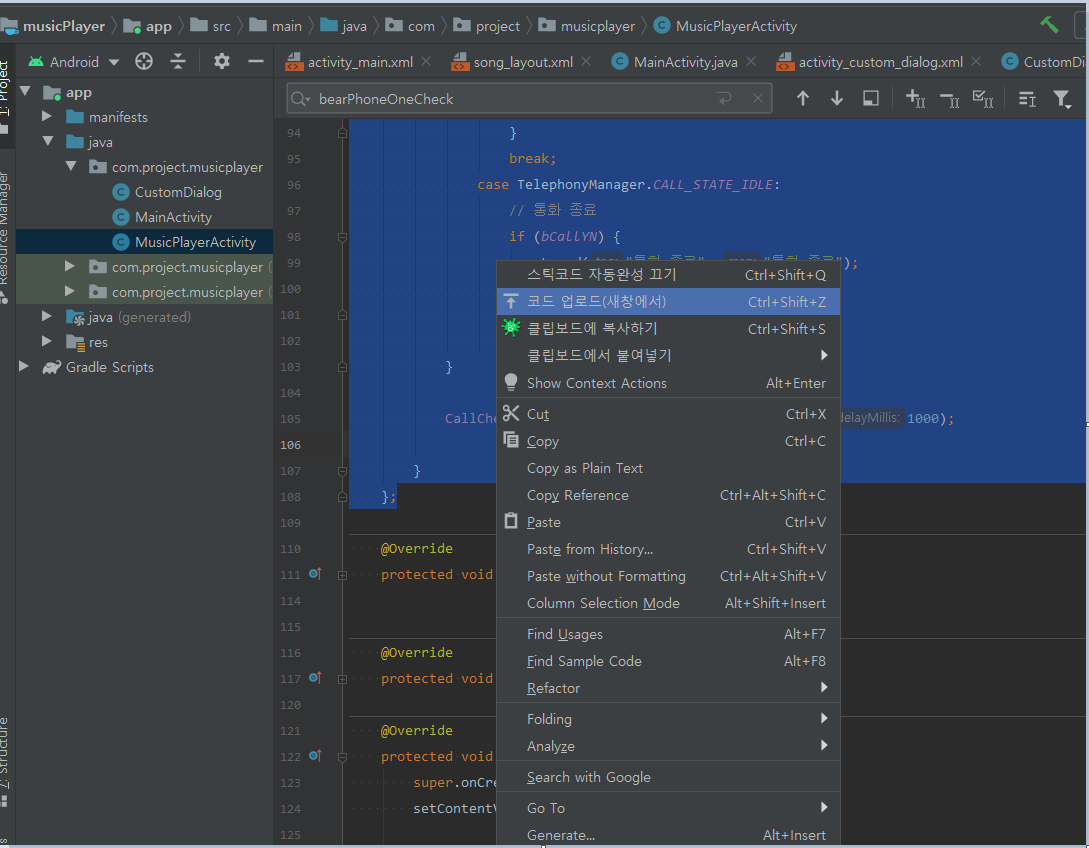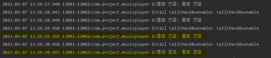3. MusicPlayerActivity onCreate() CallCheckHandler 추가
