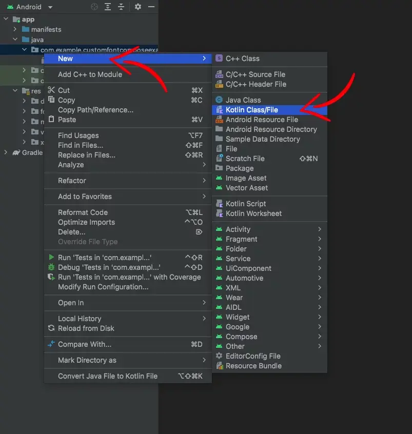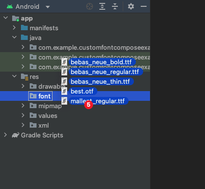 val best = FontFamily(Font(R.font.best)) //"best"자리에 사용하려는 글꼴파일의 이름 입력