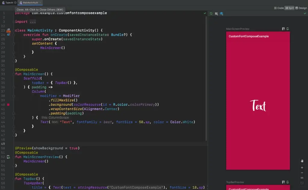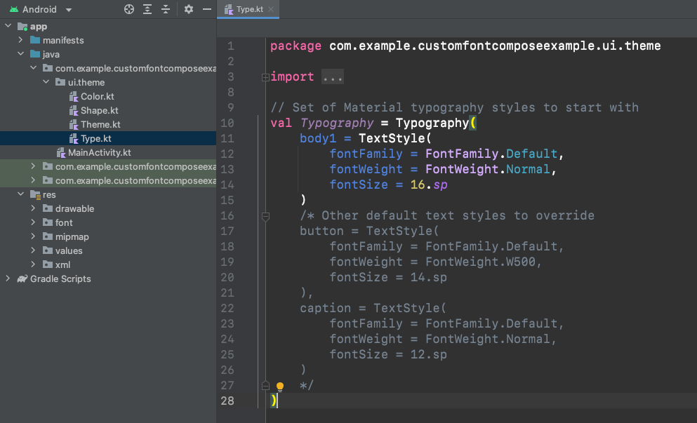 Font Family를 사용하려면 Type.kt 파일로 가서 설정해줍니다.