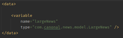 <data> 태그를 추가하면 아래와 같이 레이아웃 내에서 변수를 사용할 수 있습니다.