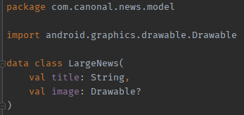 리사이클러뷰의 아이템에 사용할 LargeNews 라는 이름의 data class를 추가해줍니다.