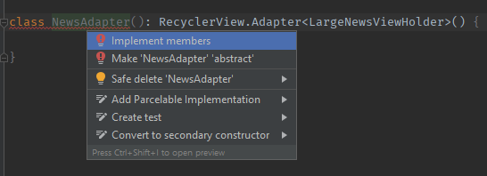 RecyclerView.Viewholder 를 상속받는 LargeNewsViewHolder 클래스를 만들어보겠습니다.