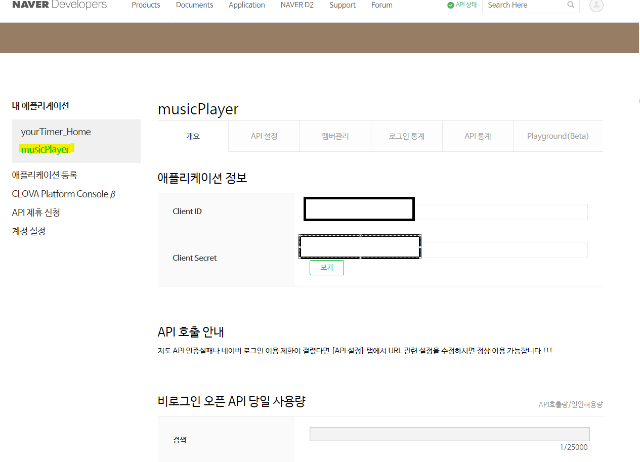 2. 네이버 Developers 애플리케이션 정보 확인