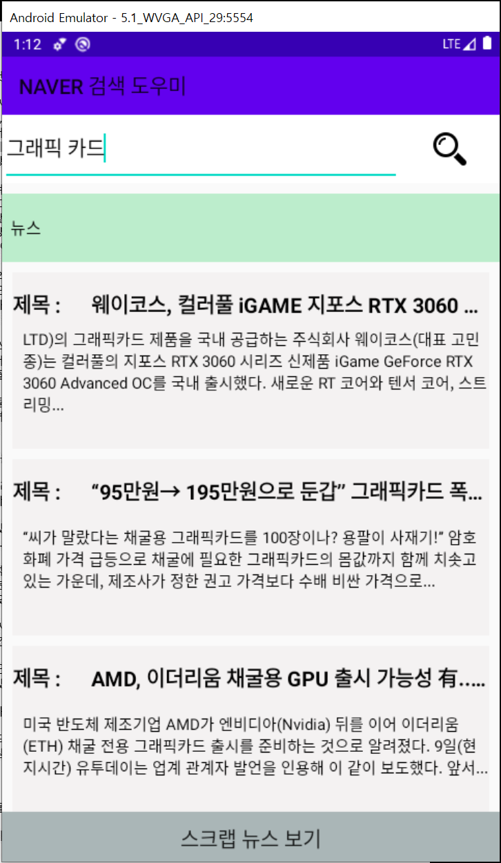 네이버 API를 사용하면 양질에 데이터를 쉽게 받아와서 앱에 활용할 수 있을 것 같네요.