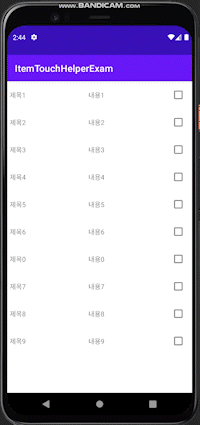 * itemTouchHelper 객체에 리사이클러뷰를 붙혀줌으로써, CustomItemTouchHelperCallback 클래스의 콜백메서드들이 동작한다.