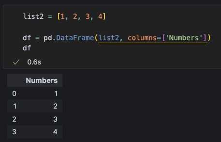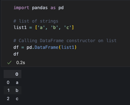 생성에 사용한 list1의 길이가 3이므로 3행 1열의 데이터프레임이 생성되었습니다.