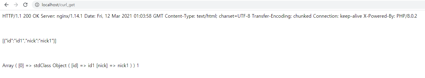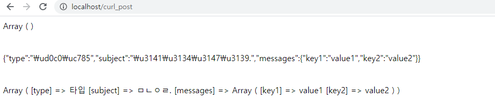 간단하게 브라우저상에서 /curl_get , /curl_post 를 통해 response를 출력해 보겠습니다.