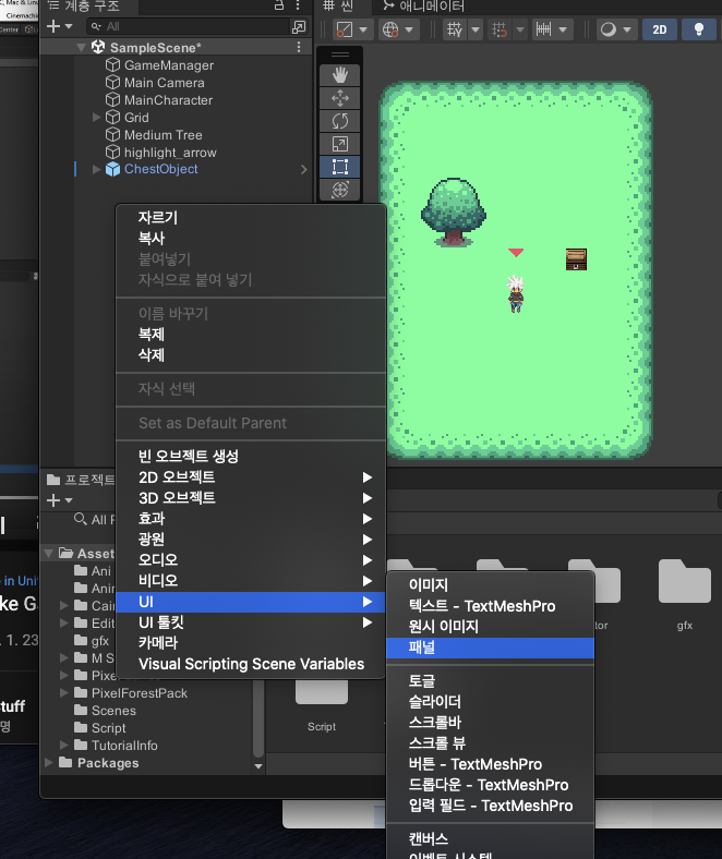 먼저, 계층구조에서 UI - 패널을 생성합니다.