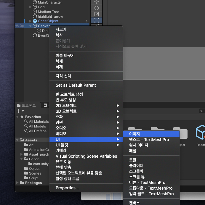그리고 지금은 넣지는 않지만 추후에 npc의 이미지를 넣을 수 있는 이미지ui를 추가하겠습니다. (UI - 이미지)