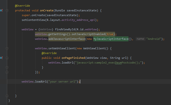 webView.loadUrl("javascript:sample2_execDaumPostcode();");