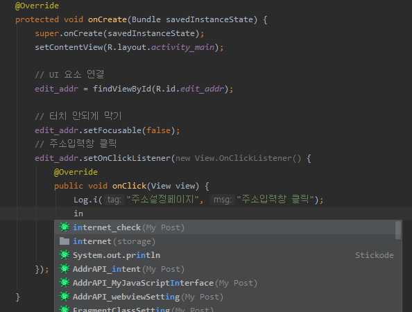Log.i("주소설정페이지", "주소입력창 클릭");
