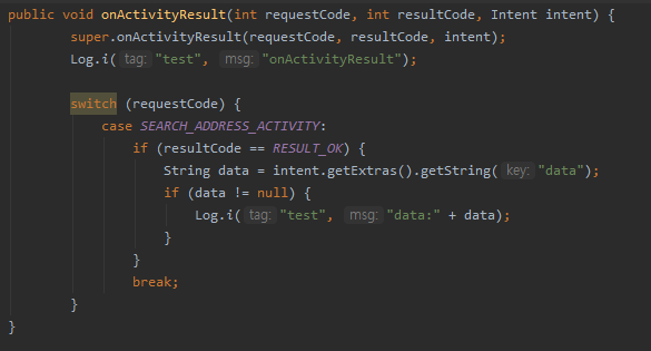 startActivityForResult(i, SEARCH_ADDRESS_ACTIVITY);