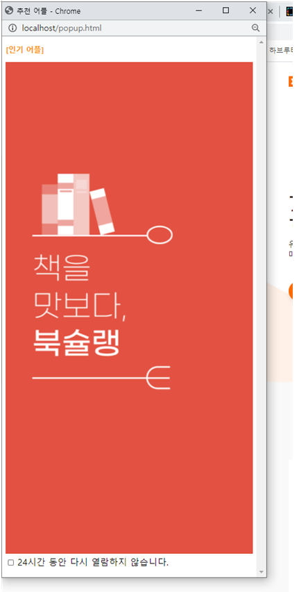 오늘 예제는 홈페이지 첫화면에서 자동으로 팝업창을 띄어보고