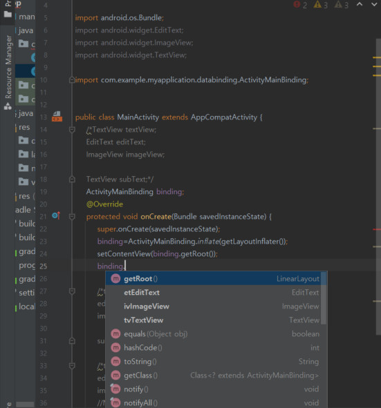 하지만 viewBinding을 사용한다면 해당 xml과 바인딩된 객체변수를 통해서 접근하기 때문에