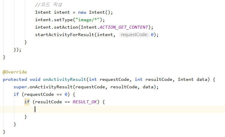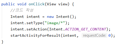 다음은 이미지 파일을 불러오는 인텐트를 생성합니다.