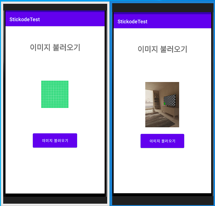 여기까지 마치면, 이미지 불러오기 버튼을 클릭해서 앨범에 있는 이미지를 선택하면 아래 사진과 같이 앱 화면에 출력되는 것을 확인할 수 있습니다.