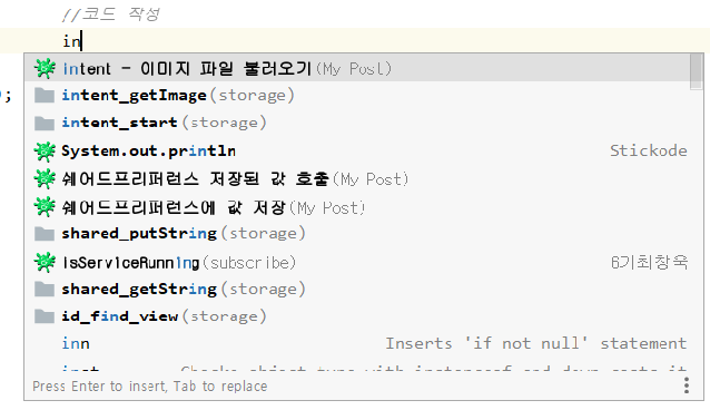 다음은 선택한 이미지 정보를 가져오기 위해 '인텐트 결과값 호출'를 클릭합니다.