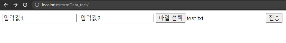 실제 브라우저에서 다음과 같이 입력값과 파일을 첨부하고 전송버튼을 누르면