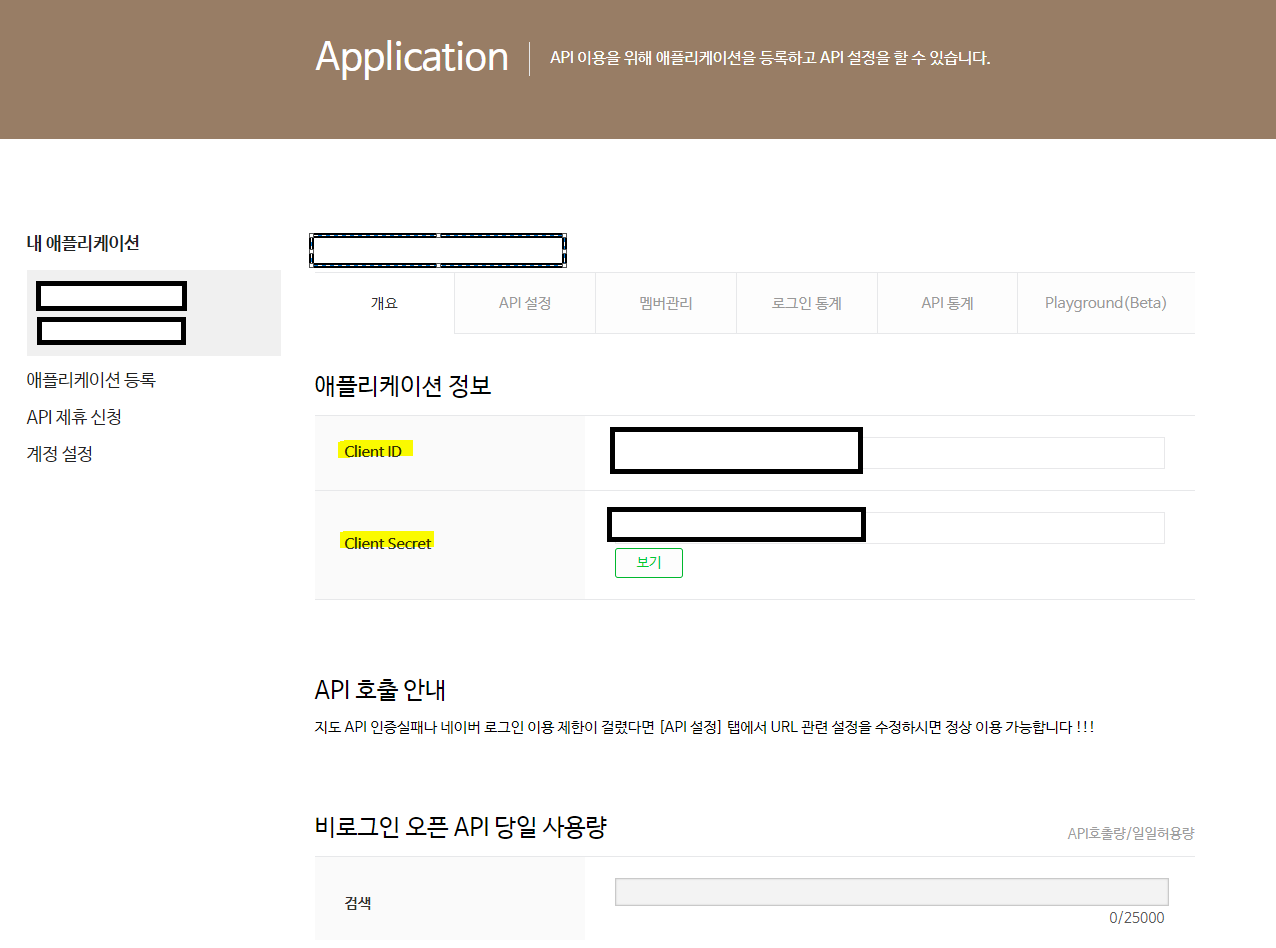 네이버 검색 API 키값 확인 방법