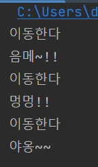 이후엔 기존의 클래스와 동일하게 모든 동물 클래스에서 bark() 함수를 사용할 수 있지만 각각의 내용이 달라지는 것을 확인할 수 있습니다.