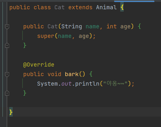 Cat 클래스에 추상클래스인 Animal 을 상속받게 되면