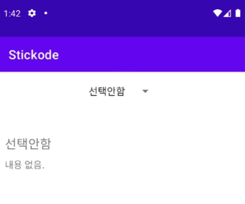 이때도 스틱코드의 spinner(itemSelectedListener)를 활용합니다.