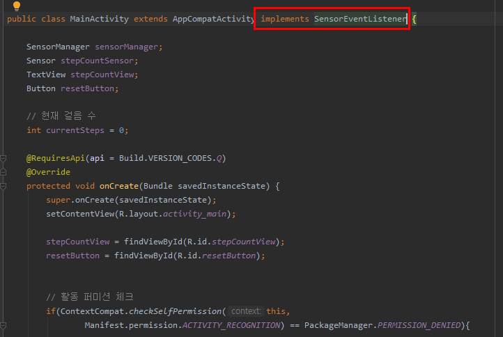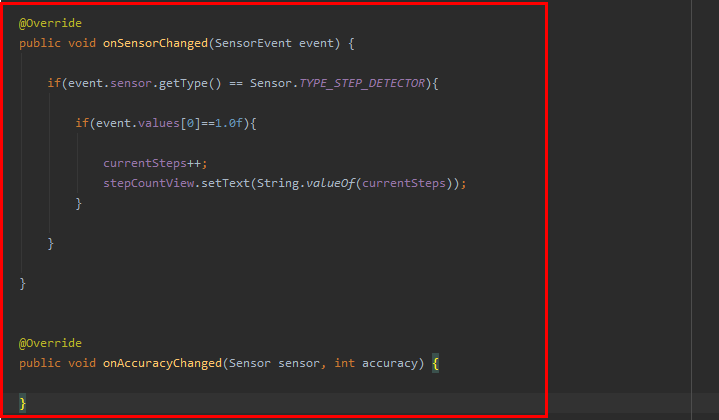 onSensorChanged 메소드와 onAccuracyChanged 메소드가 추가됩니다