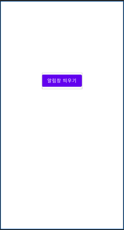 버튼이 하나 있는 간단한 레이아웃입니다. 버튼 클릭 시 설정한 알림을 띄우도록 구현할 예정입니다.
