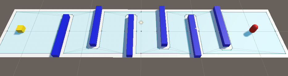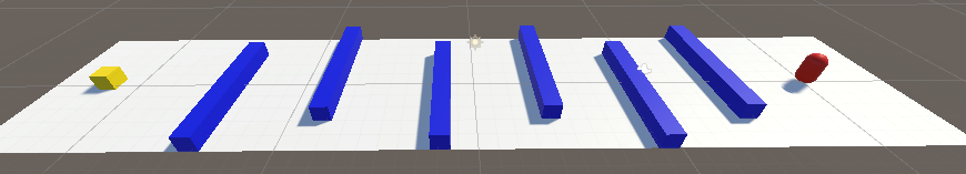 그리고 왼쪽 끝에 Capsule 가 이동할 목적지를 만들어 놓을게요 목적지는 Cube 로 만들어 줬습니다.