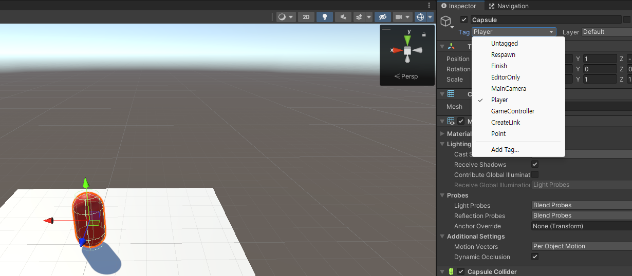 저는 Capsule 에는 Player Tag를 달아줬습니다.