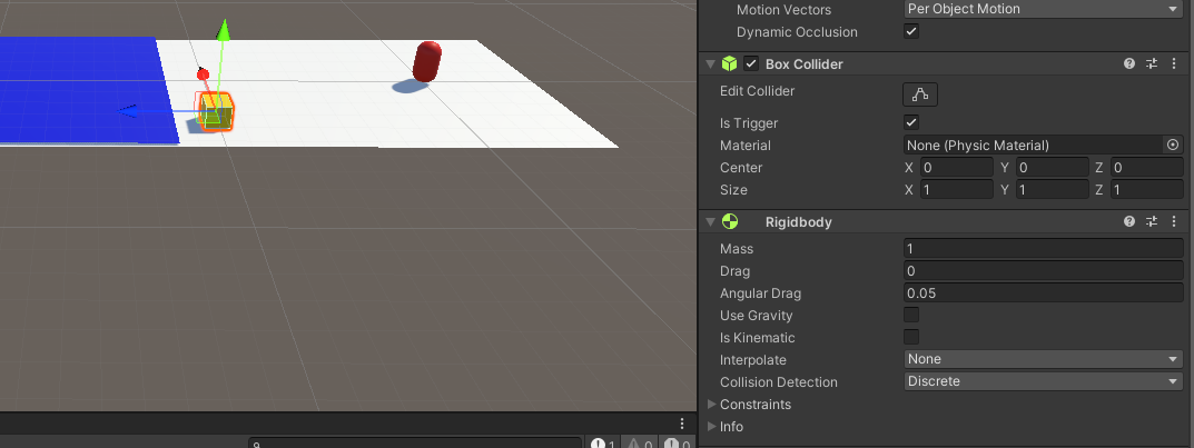 그리고 Box Collider 에 있는 is Trigger를 체크해주세요