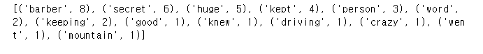 파이썬의 딕셔너리 구조로 단어를 키(key), 단어데 대한 빈도수가 값(value) 로 저장되어 있습니다.