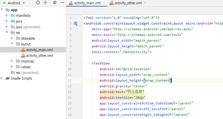 android:text="텍스트뷰"
