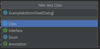 그리고 다음과 같이 바텀시트 다이얼로그 프래그먼트를 클래스 파일로 만들어줍니다.