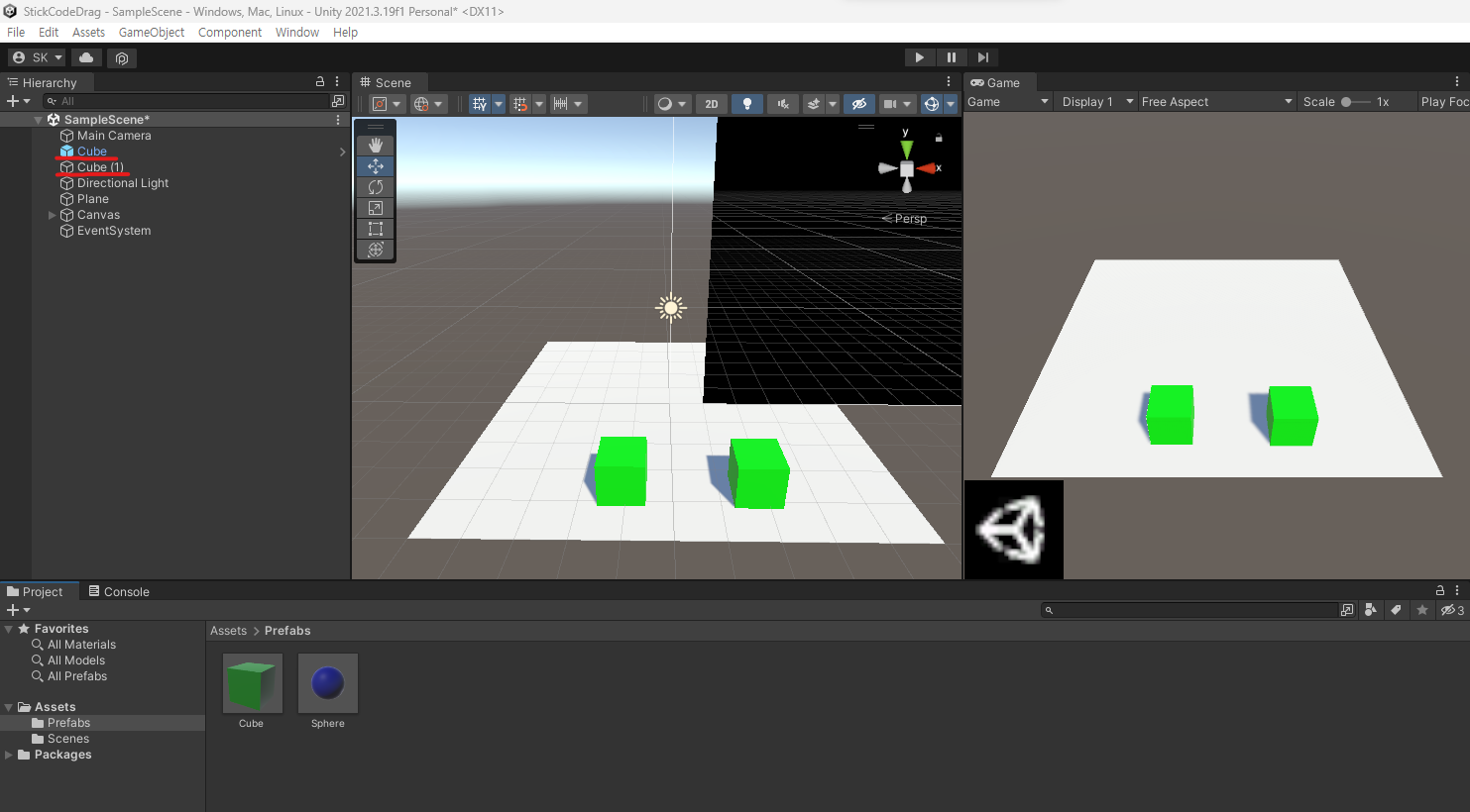그러나 이 둘 중에 하나는 새로 만든 오브젝트이고 하나는 Prefab을 통해서 바로 만든 오브젝트입니다.