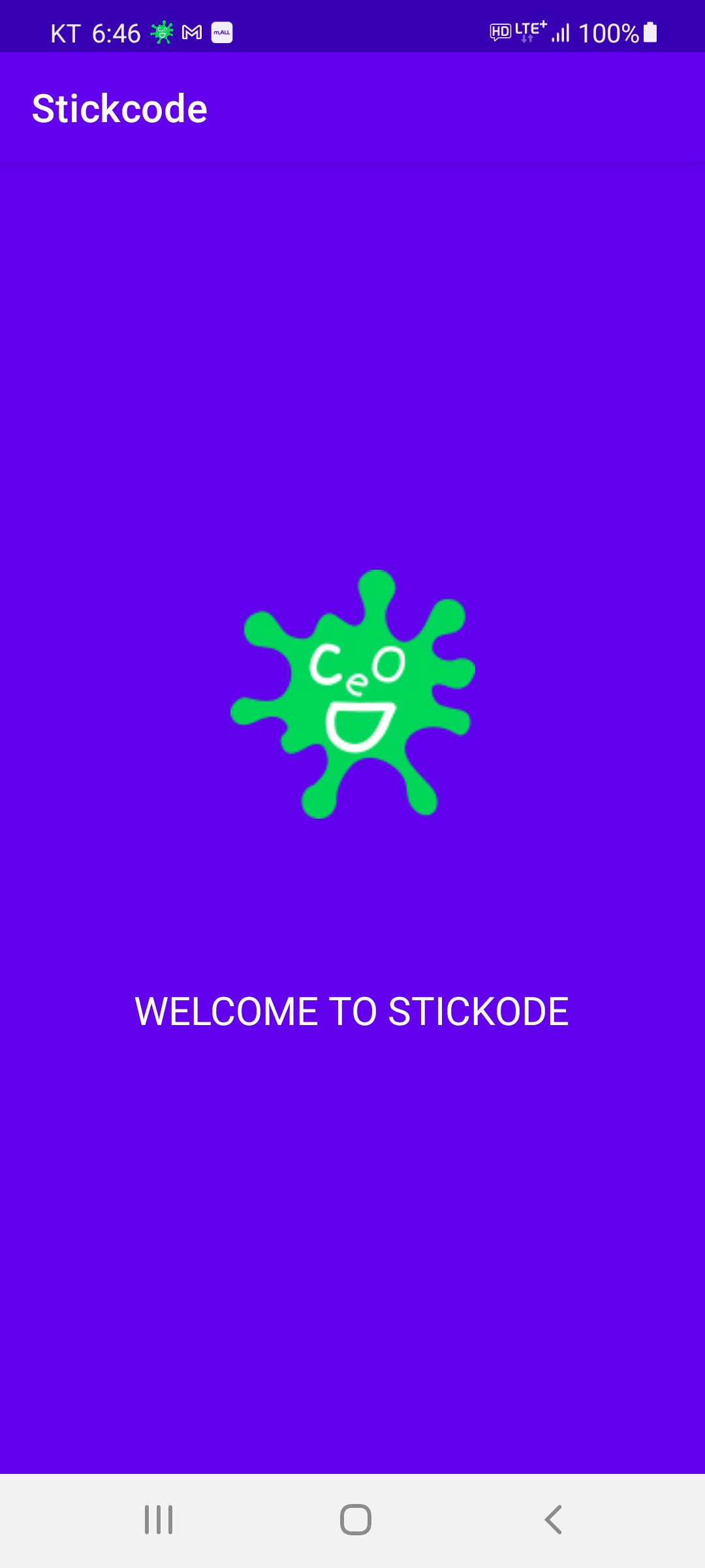 android:text="WELCOME TO STICKODE"