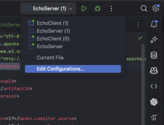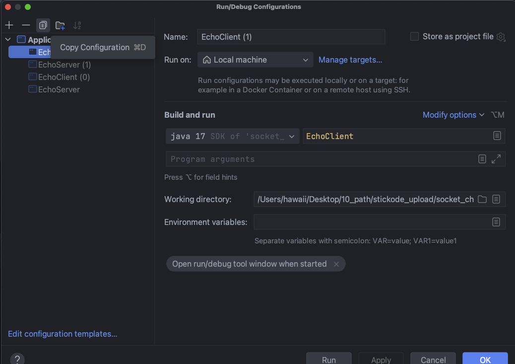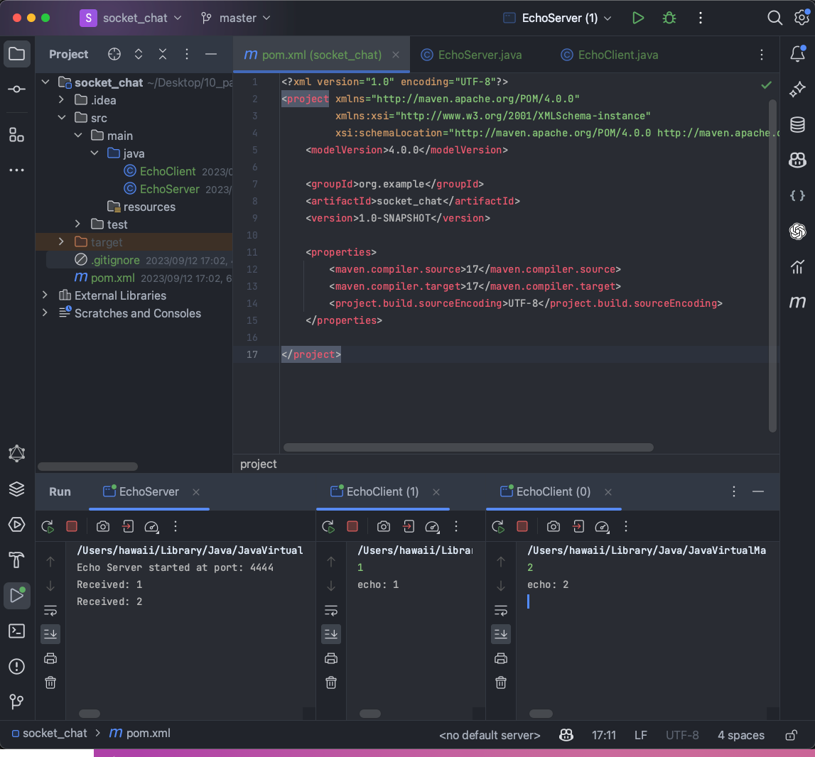 EchoClient.java, EchoServer.java를 실행하면 클라이언트와 서버가 메시지를 주고 받는 간단한 프로그램을 작성할 수 있습니다.