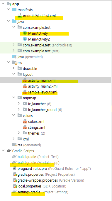 위 기능을 구현을 하기 위해 필요한 파일들을 노란색으로 표시했습니다.