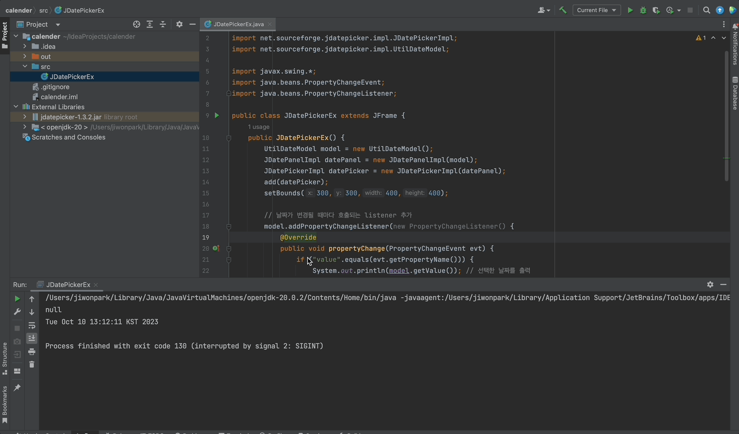 안녕하세요. 이번 포스팅에서는 jdatepicker 라는 라이브러리를 사용해 swing으로 캘린더를 생성하고 유저가 선택한 날짜를 표시하는 예제를 알려드리겠습니다.